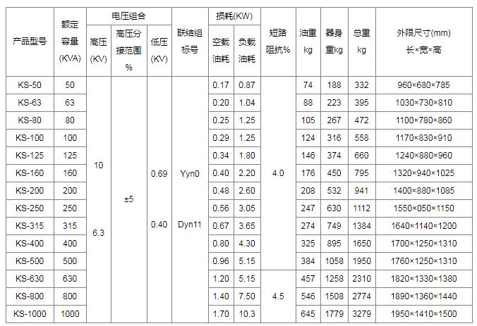 4.礦用變壓器技能數(shù)據(jù)(隔爆型)